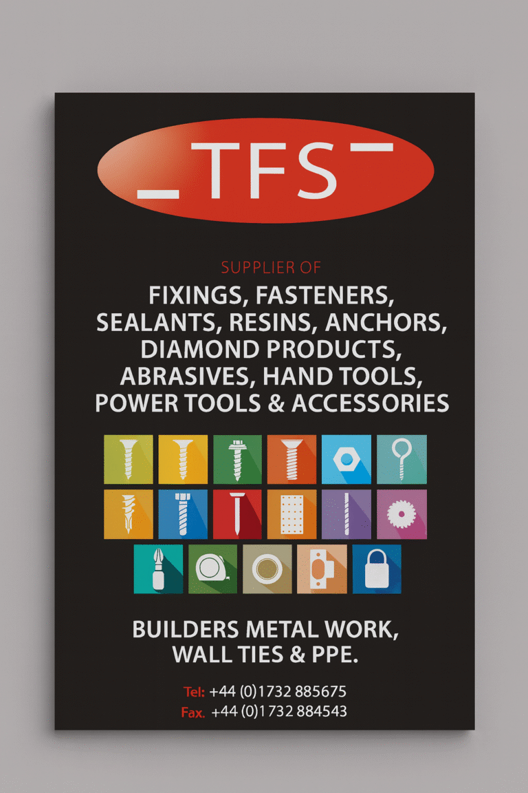 TFS Ltd provide a competitive, reliable and friendly service in the distribution of Fixings, Fasteners, PPE, Metalwork, Sealants, Adhesives and Tools to the construction industry.